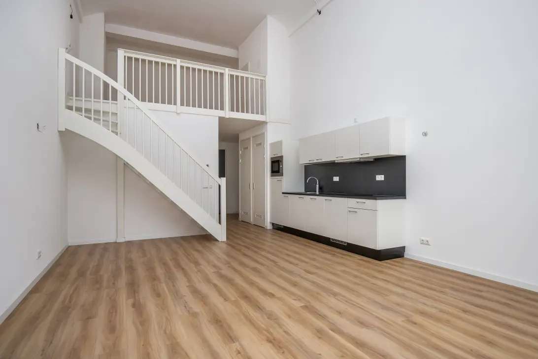 The Type B1 Maisonnette is a split level apartment with entresol in a monumental building. The apartment has a street side view. This spacious apartment features one bedroom on the entresol, a spacious living room and a bathroom with walk-in shower. The kitchen includes a combi oven/microwave, fridge freezer combination, dishwasher and induction cooker. The apartment also has a separate room with a washing machine connection.