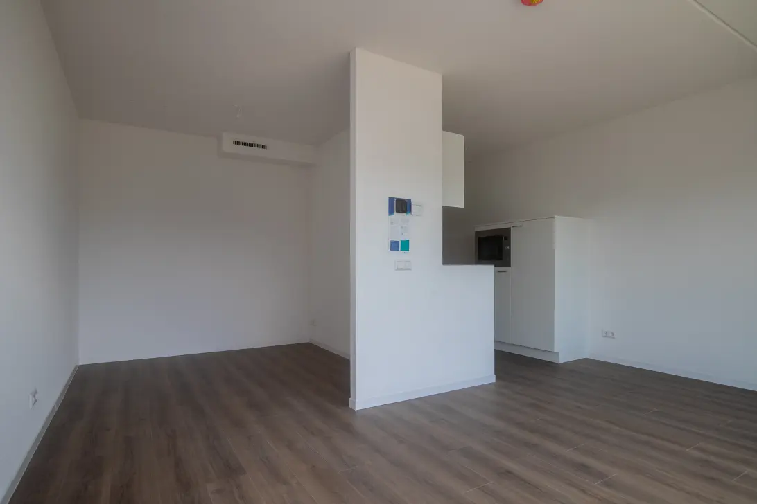 Type B-As is a 40m2 studio located on floor 2 facing the south and located above the entrance. The studio comes with a well-equipped kitchen with an induction hob, fridge-freezer, combi oven, and a connection to install a washing machine or dishwasher. In addition, the property is unfurnished with high-quality PVC flooring and curtains.