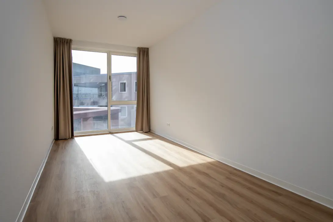 Type F7.04 is an 78.60m2 friends apartment and has 2 bedrooms and 2 ensuite bathrooms, a spacious hallway a storage of 7.20m2 and is located on floor 3 with a balcony of 4.56m2 facing southwest. The apartment comes with a well-equipped kitchen with an induction hob, fridge-freezer, combi oven, and dishwasher. In addition, the property is unfurnished with high-quality PVC flooring and curtains. These apartments have been specially developed for home sharers.