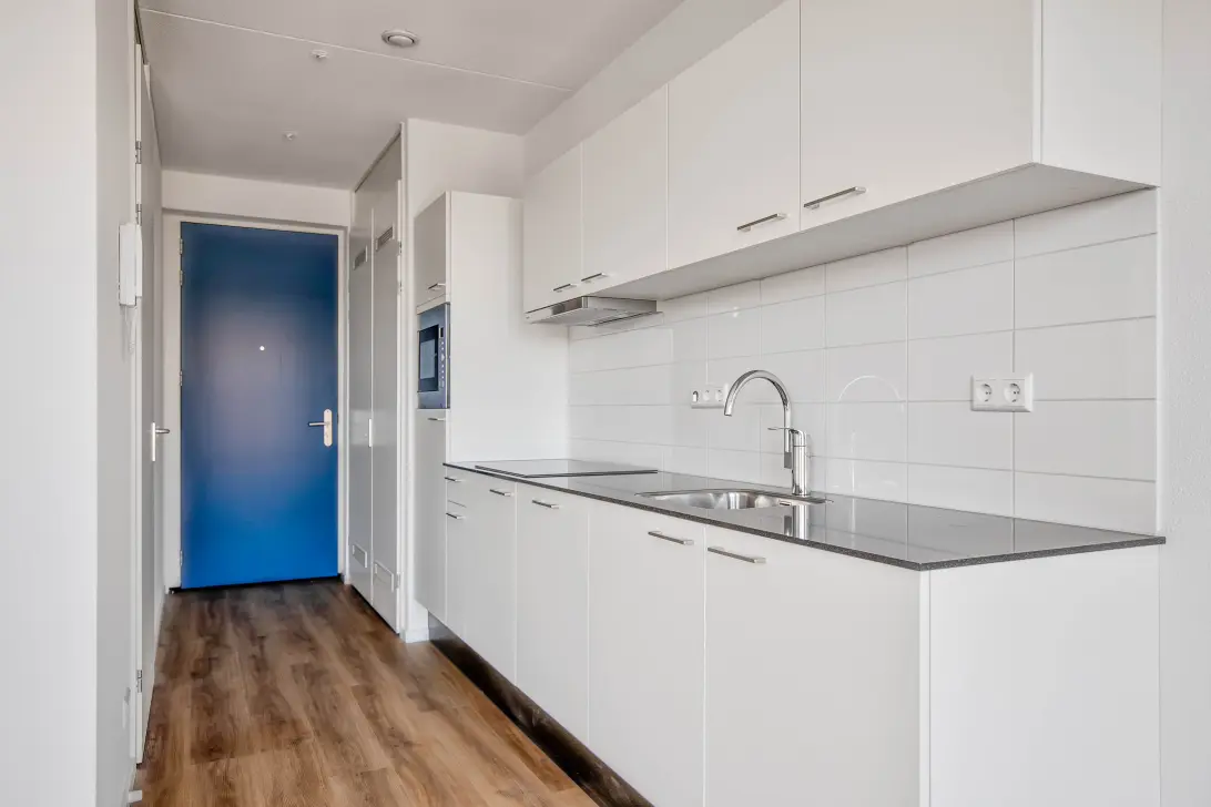 This is The Cohesion Wembley Amsterdam, 126 one- and two bedroom co-living apartments for urban professionals. Together we make the neighborhood come alive with a diversity of people and cultures. Co-living in Amsterdam starts at The Cohesion. The Cohesion Wembley is conveniently located, right next to the metro stop Jan van Galenstraat and the A10 (s105) freeway. From here, you can reach Sloterdijk, Schiphol or the Zuidas in no time.